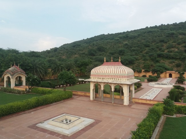 Pensamos que nuestra exploración vespertina había terminado. Sin embargo nuestro guía, Bhajan, sugirió que visitáramos Sisodia Rani Ka Bagh, el jardín que rodea el palacio que construyó un maharajá de Jaipur para su reina principal, una princesa de Udaipur.