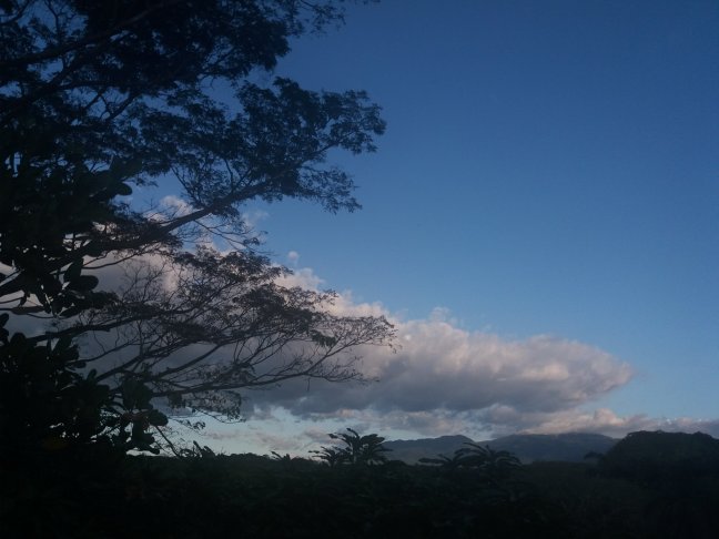 O como este aguamarina en el horizonte iluminado y este cobalto sobre las nubes, en dirección al Cerro Turrubares, hacia el oriente, al avanzar la tarde.