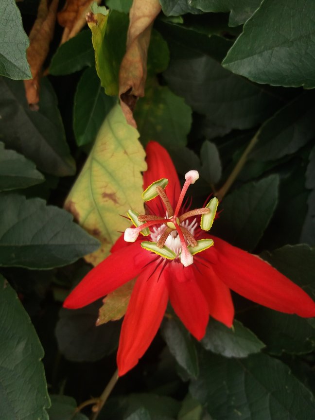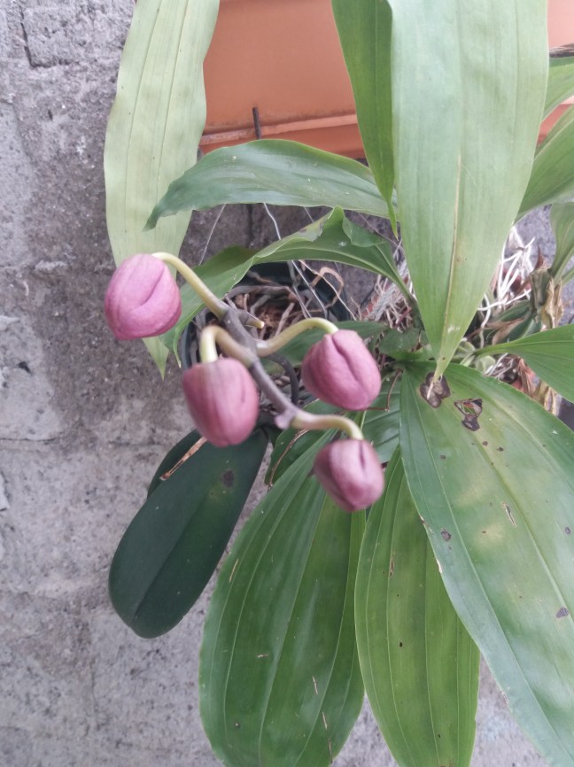 Reconfortado, salí al jardín a observar plantas y flores. Una mariposa completamente anaranjada revoloteaba entre rosas magenta. Dos pasifloras de color rojo pasión han florecido en la enredadera. Y ya despuntan cuatro botones en una de las orquídeas.