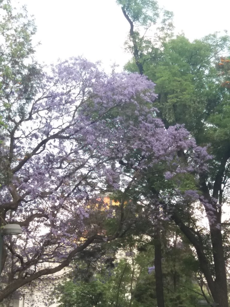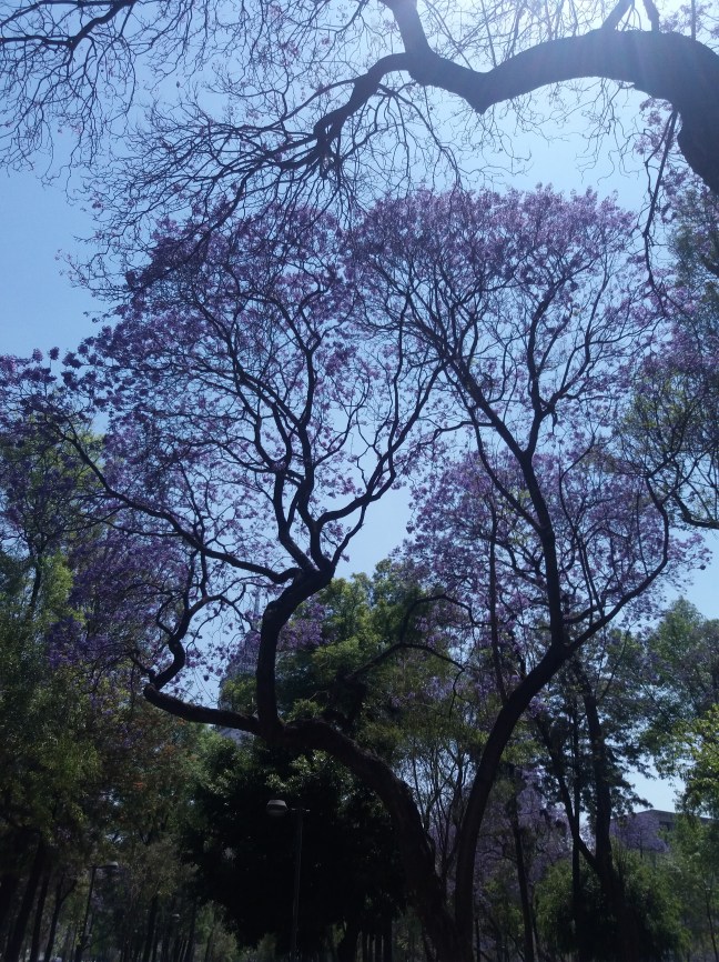 Observé cientos de jacarandas en flor desde el aires mientras sobrevolábamos la Ciudad de México en la maniobra de descenso y aterrizaje. Sus copas floridas pintaban de lila violáceo el paisaje urbano. Anunciaban el aire primaveral y descontraído que encontraría en la ciudad.