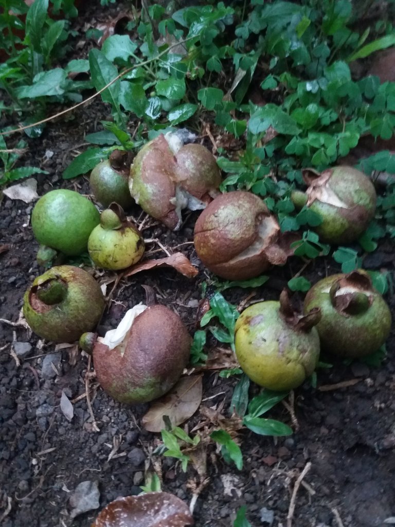 Sin embargo, las raíces y el tronco exfoliante se han mantenido fuertes. Y le brotaron nuevas ramas. Aunque sean débiles, siempre les retoñan hojitas. Y el arbolito generoso da mucho fruto, ácido, delicioso para batirlo en agua. Para resistirme a la tristeza gris del cielo me detuve a reunir y recoger los cases caídos al zacate cerca del árbol.
