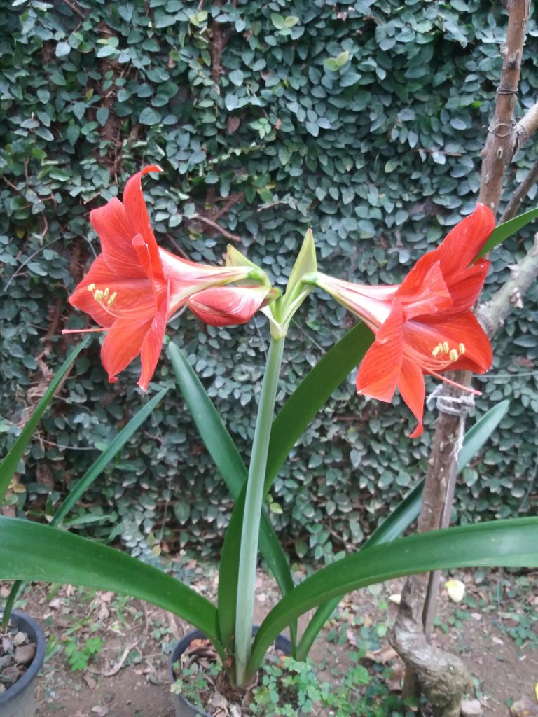 Los capullos de flores rojas que han estado creciendo en uno de los lirios comenzaban a abrirse.