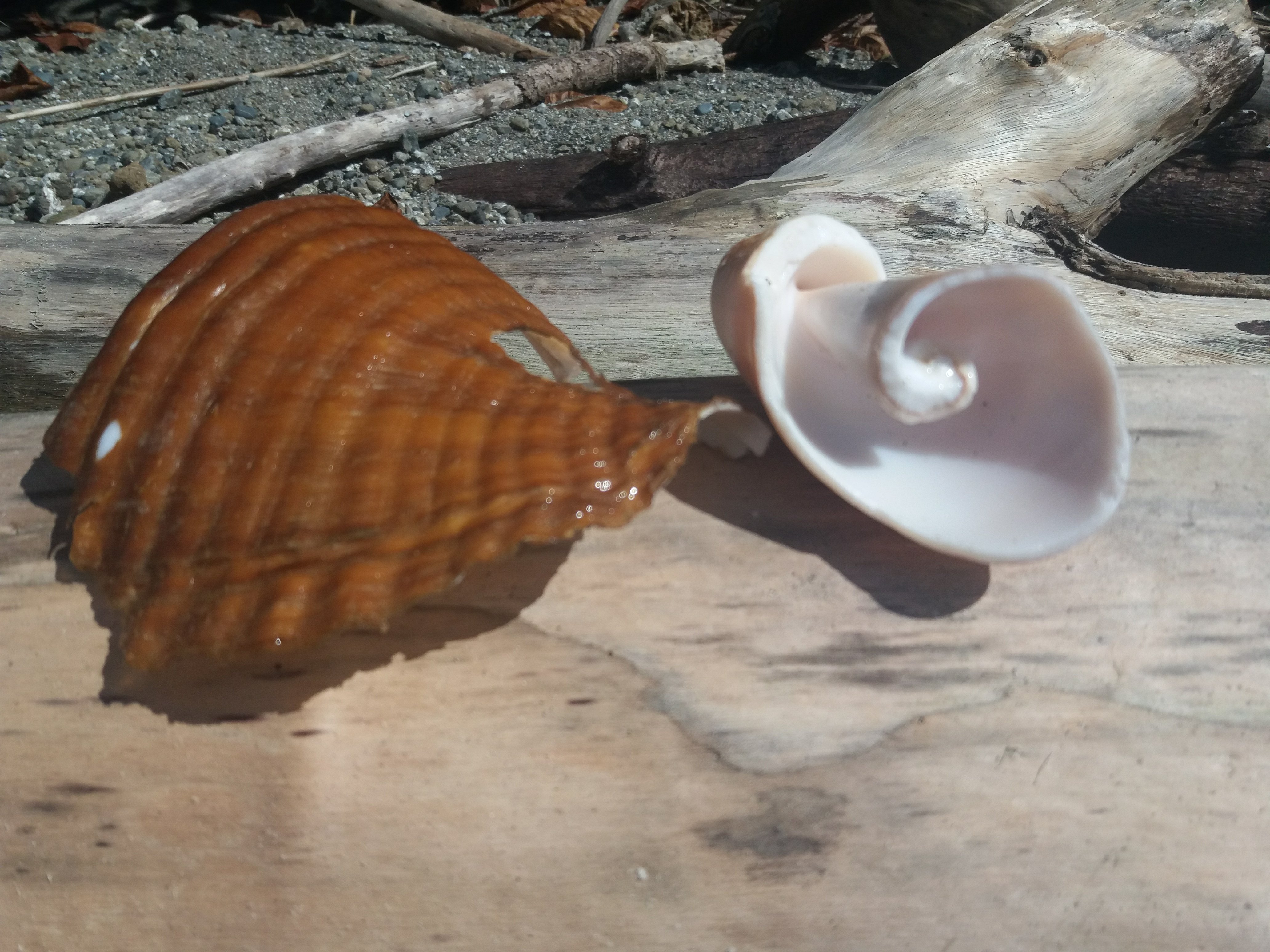 Muy cerca encuentro un trozo del exterior cobrizo de la concha, marcado por hendiduras onduladas. Coloco ambas piezas juntas sobre un tronco y las observo.