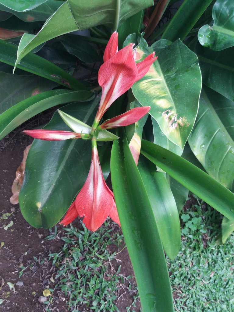 And so I walk outside into my garden and regard the red lilies that have bloomed, showing themselves among the green leaves of the anthurium plants.