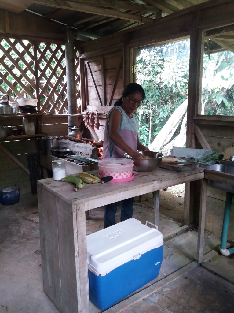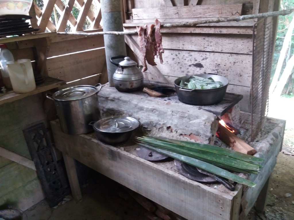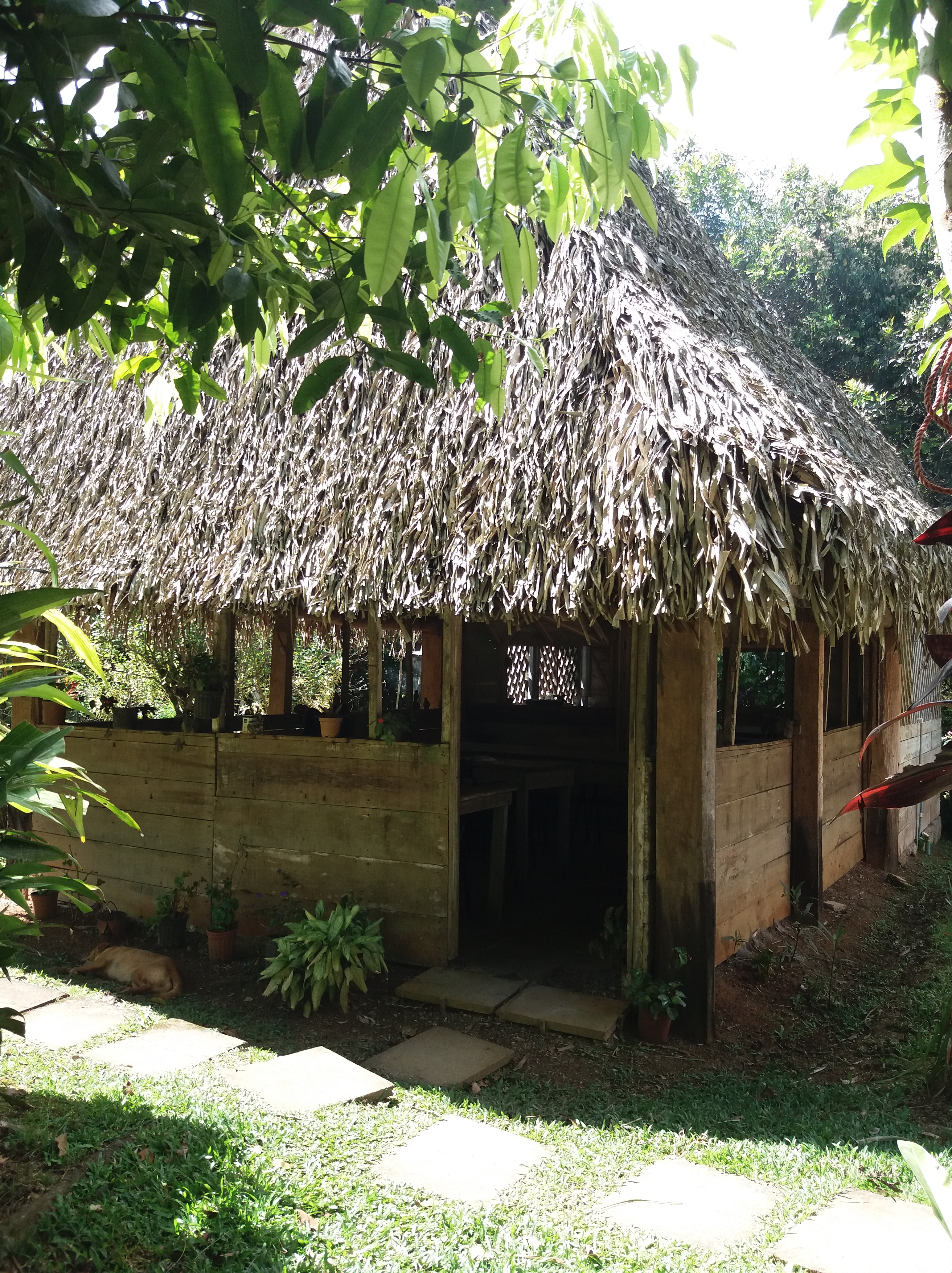 Anochecía. En la penumbra logramos ubicar nuestras cosas en el rancho grande, construído con arquitectura tradicional boruca. Y nos acercarmos a la cocina, donde Hernán ya había encendido la lumbre en el fogón, para preparar la cena. Nos costó controlar el calor y el humo en el fogón. Pero lo logramos. Luego apreciamos la noche estrellada, el firmamento nítido, sin nubes, en el entorno oscurísimo. Y nos fuimos a dormir rodeados por la paz de la montaña.