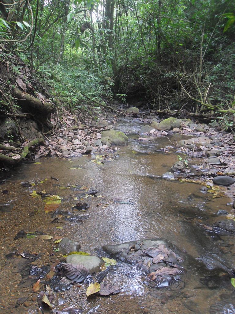 En Boruca pedimos direcciones para nuestro destino, la Finca Educativa Kan Tan. Los lugareños nos enviaron a atravesar un puente estrecho de metal sobre la quebrada. No estábamos seguros de que nuestro carro pasaría por el puente. Así que bajamos hasta el cauce por un paso de tierra, vadeamos la quebrada, salimos a todo gas de ella y subimos un kilómetro, por el camino de piedra, hasta la finca.