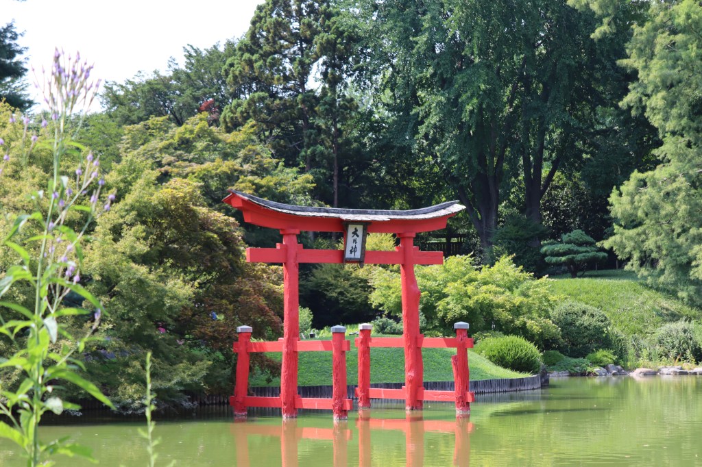 Cuando llegué a la explanada frente a la laguna, hice un reverencia de respeto ante el torii (鳥居), el portal bermellón que indica la cercanía de un altar sintoísta. Leí los ideogramas en el torii: Dai myo shin, “Al grande y luminoso dios”.