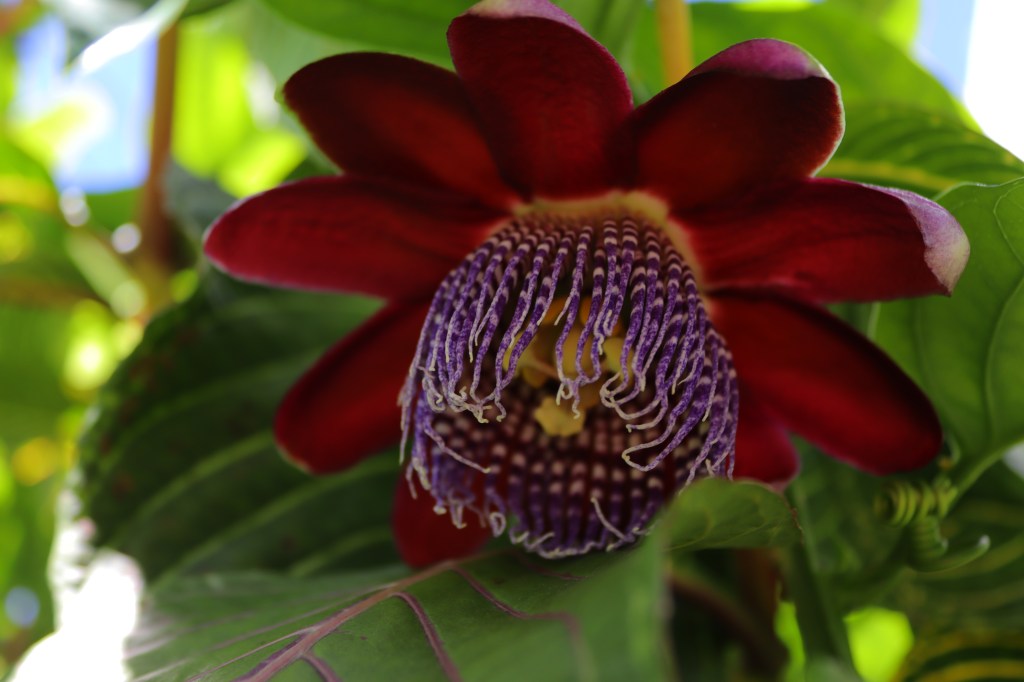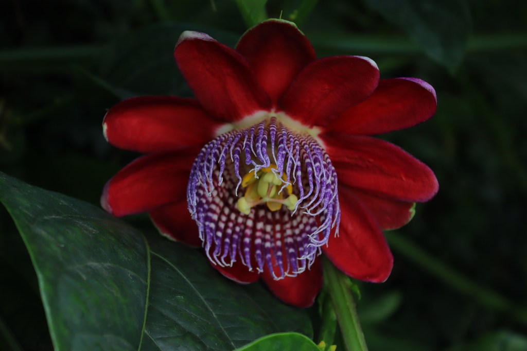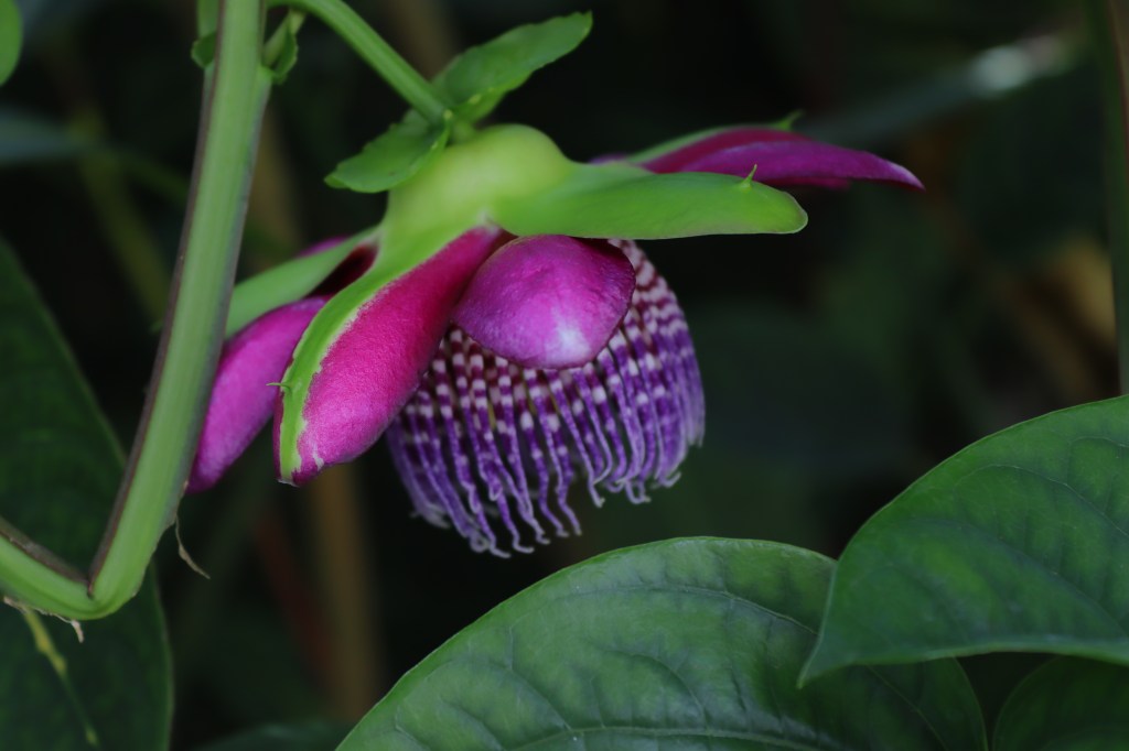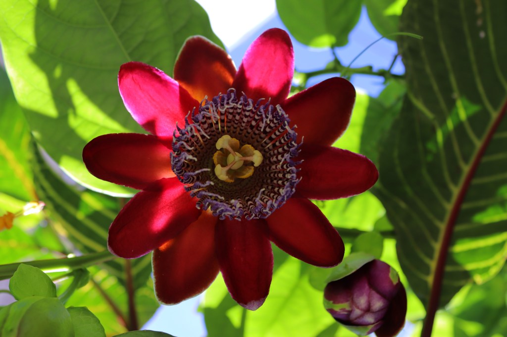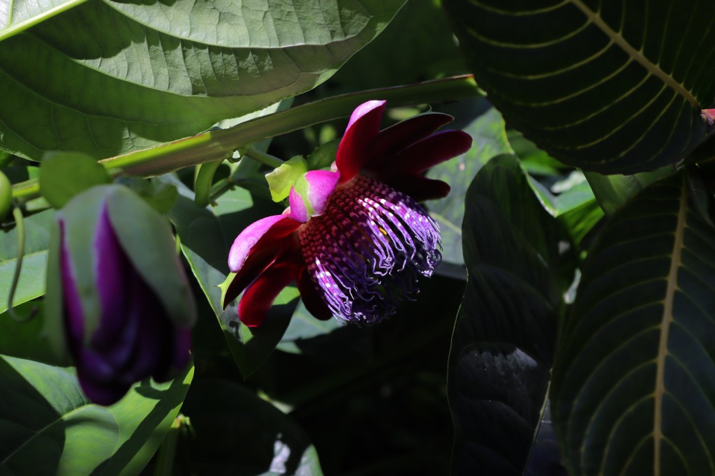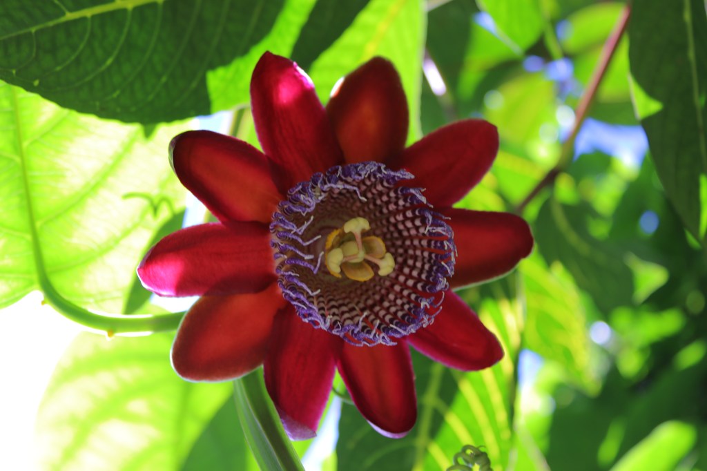 De manera desconcertante y maravillosa, la Passiflora alata que sembramos en mi jardín durante la cuarentena de Semana Santa del 2020, ha florecido por primera vez este mes de diciembre, al cerrarse el convulso, gozoso y doloroso, 2021.