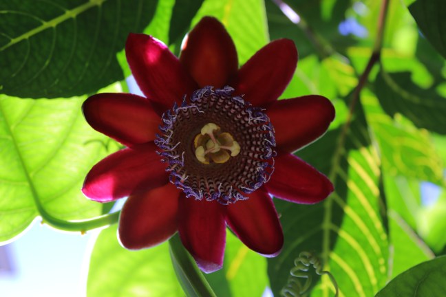 De manera desconcertante y maravillosa, la Passiflora alata que sembramos en mi jardín durante la cuarentena de Semana Santa del 2020, ha florecido por primera vez este mes de diciembre, al cerrarse el convulso, gozoso y doloroso, 2021.