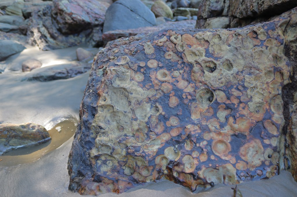 In the morning, I would find the rocks shaded and wet. The hills at the beach’s southeast end cast a shadow over the rocks until the sun climbed high enough in the sky to shine on them. The sea had washed them during high tide and left them wet and opaque as it ebbed.
