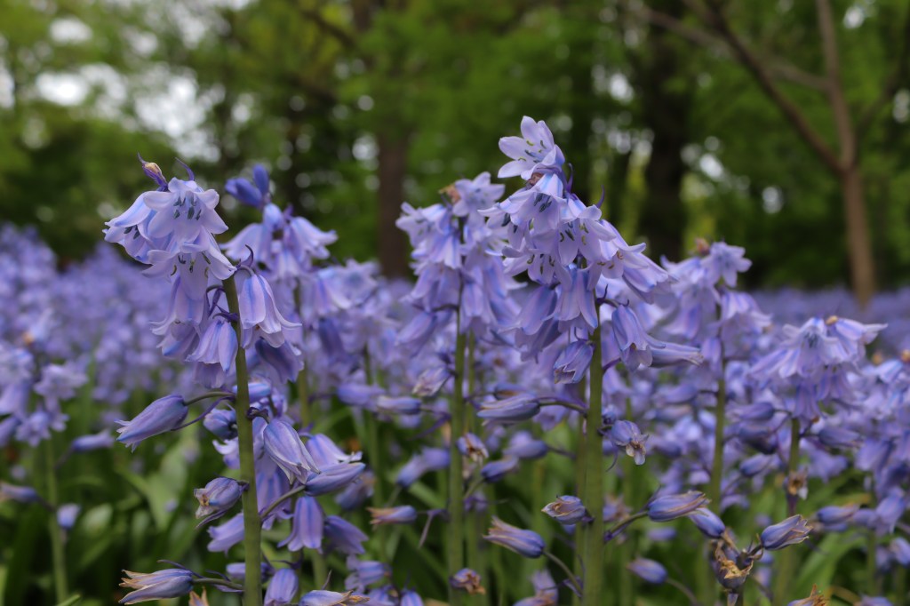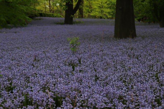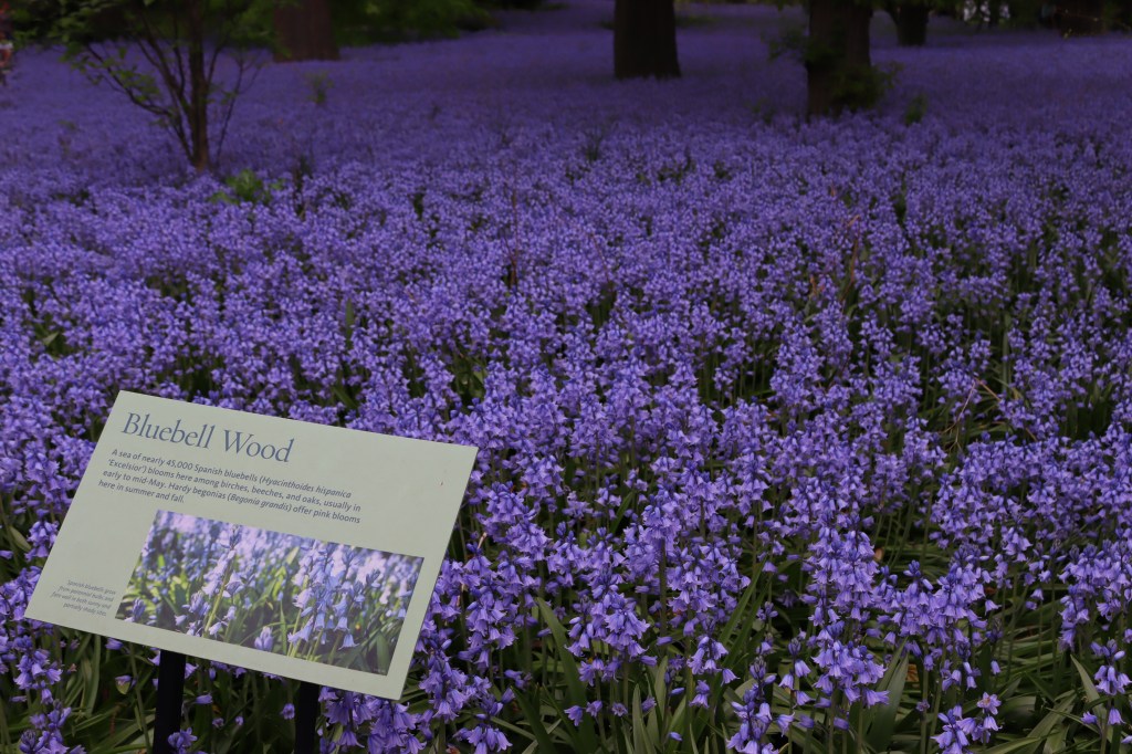 Hoy, al visitar el Jardín Botánico de Brooklyn, me encontré con un campo azul. Miles de jacintos del bosque (Hyacinthoides hispanica ‘Excelsior’) han florecido a la sombra de robles gigantescos.