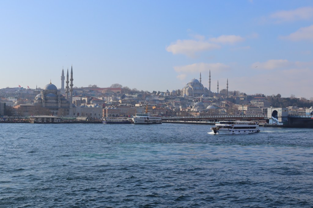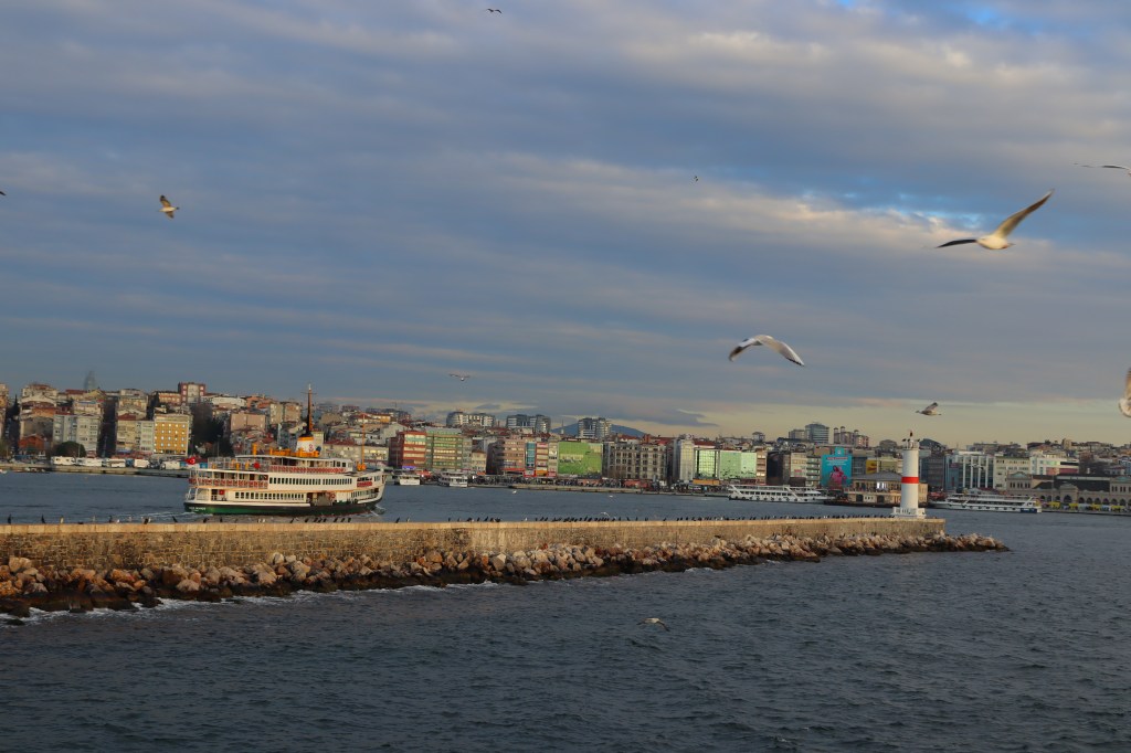 We have enjoyed strolling along its shores, in Asian neighborhoods like Kadiköy or Üsküdar and European ones like Beşiktaş. I have appreciated the liveliness and grit of various ports, like Kadiköy, Eminönü, or Karaköy. And we have gazed at its shore-line contours and its waters’ colors and textures from various viewpoints, like the hilltop mosques of Çamlica in Asia and Süleymaniye in Europe.