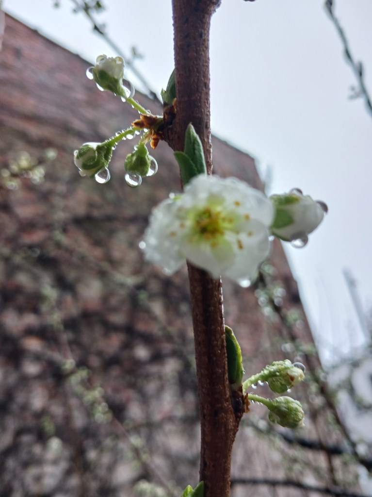 Today, however, she has withdrawn, hiding her countenance behind the overcast sky, shedding cold rain-tears, and silencing her voice of robin-songs as the wind howls the tale of enduring winter.