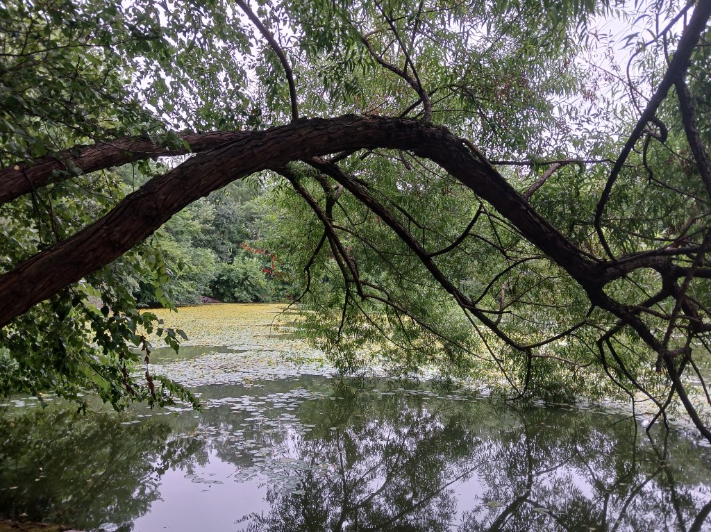 Así lo sentipensé cuando llegué a un recoveco de la península donde dos árboles se inclinan, desde la orilla, hacia el agua, y forman un portal natural. Me detuve ante él y me sentí en un umbral; a las puertas vitales y sentimentales de poder practicar ese arte. Más allá del umbral, hay un cielo espléndido, aguas refrescantes y un campo de flores acuáticas, ninfas amarillas y alegres.