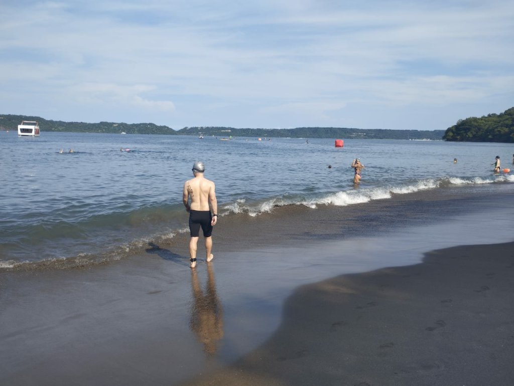 Cuando se dio la salida, caminé con calma en la arena y entré de último al agua, un par de metros atrás de los nadadores en frente de mí. En los primeros trescientos metros, hasta la primera boya, la llevé muy suave, apenas empezando a encontrar un ritmo sostenible. De la primera a la segunda boya, adentrándome en la bahía, empecé a acelerar un poco. Incluso le pasé a algunos nadadores.