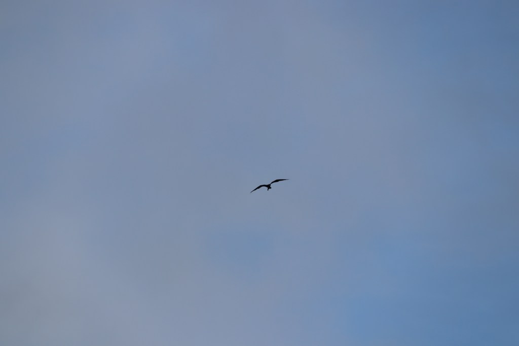 Recordé además que en los eventos, como en los entrenamientos, siemore hay un trecho en el que tiendo a sentir cansancio y desánimo. Es entonces cuando me ayuda el arte de la soledad, la capacidad de acompañarme y sentipensar que el bienestar está en mí, que brota desde la fuente natural-divina que fluye a través de mí y que es también la fuente del mar y sus seres, incluyendo el hilo dorado que me ortigó, y de los otros nadadores y de las gaviotas, los pelícanos y las fragatas magníficas en el cielo.